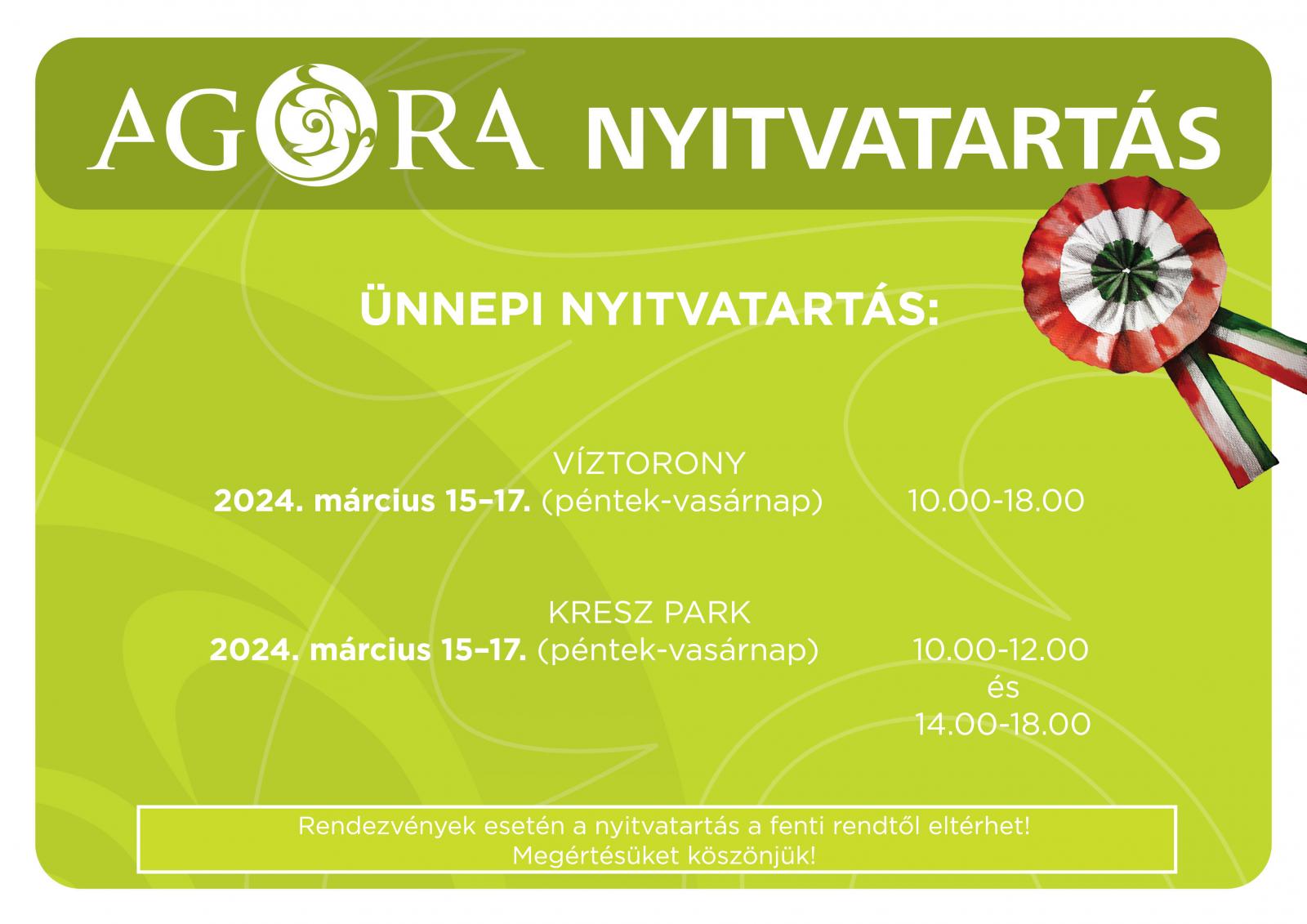ÜNNEPI NYITVATARTÁS MÁRCIUS 15.