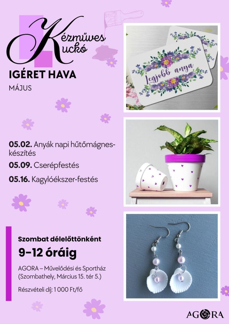 Szombat délelőttönként újabb és újabb bütykölési lehetőséggel várjuk az ügyes kezű óvodásokat és iskolásokat. Az érdeklődők a hagyományos és az újabb keletű kézműves technikákkal változatos alapanyagokból készíthetik el saját alkotásaikat – legyen az akár játék, dísz- és ajándéktárgy vagy hasznos használati tárgy.