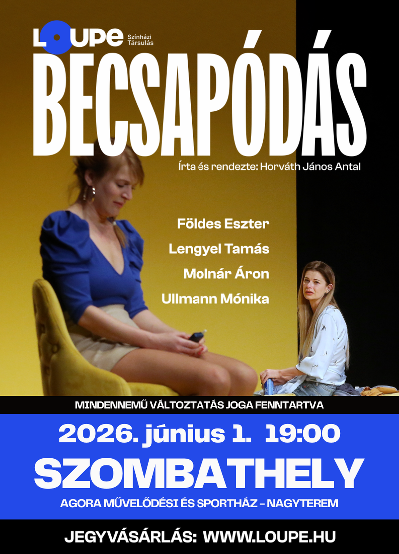 Jegyek elővételben és a rendezvény előtt a helyszínen az AGORA–Jegyirodában válthatók (Március 15. tér 5., Tel.: 20/502-9351, nyitvatartás: H-P 9.00–13.00 és 13.30-17.00 és Szo 9.00–13.00), valamint online a https://in-time.hu/e/becsapodas-szombathely-19-00-260601 oldalon.